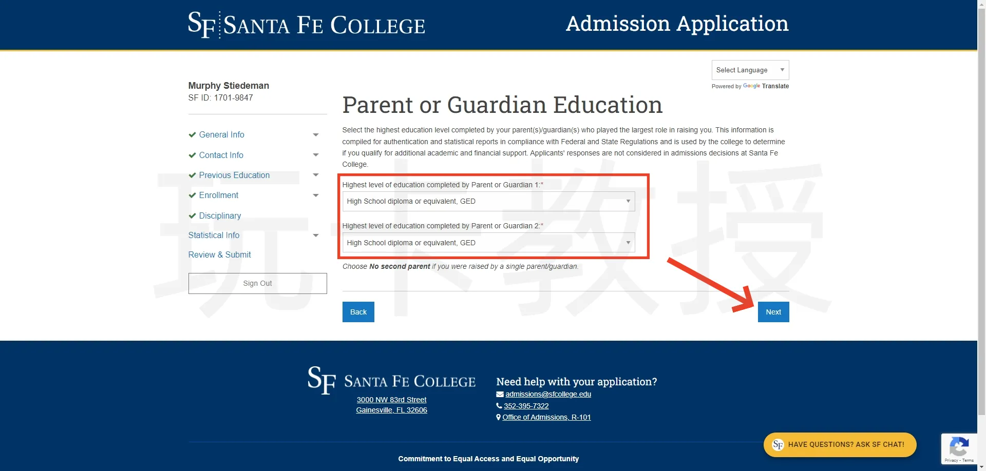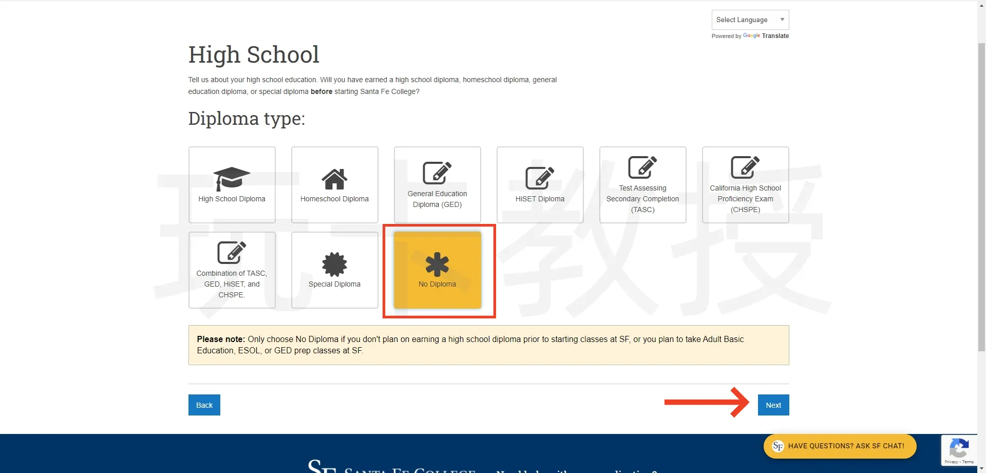 这里两项都选择:High School diploma or equivalent, GED,点击Next