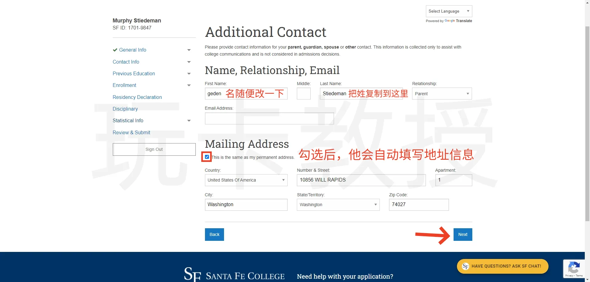 把生成名复制过来,名随便改一下,勾选他会自动填写地址信息,点击Next