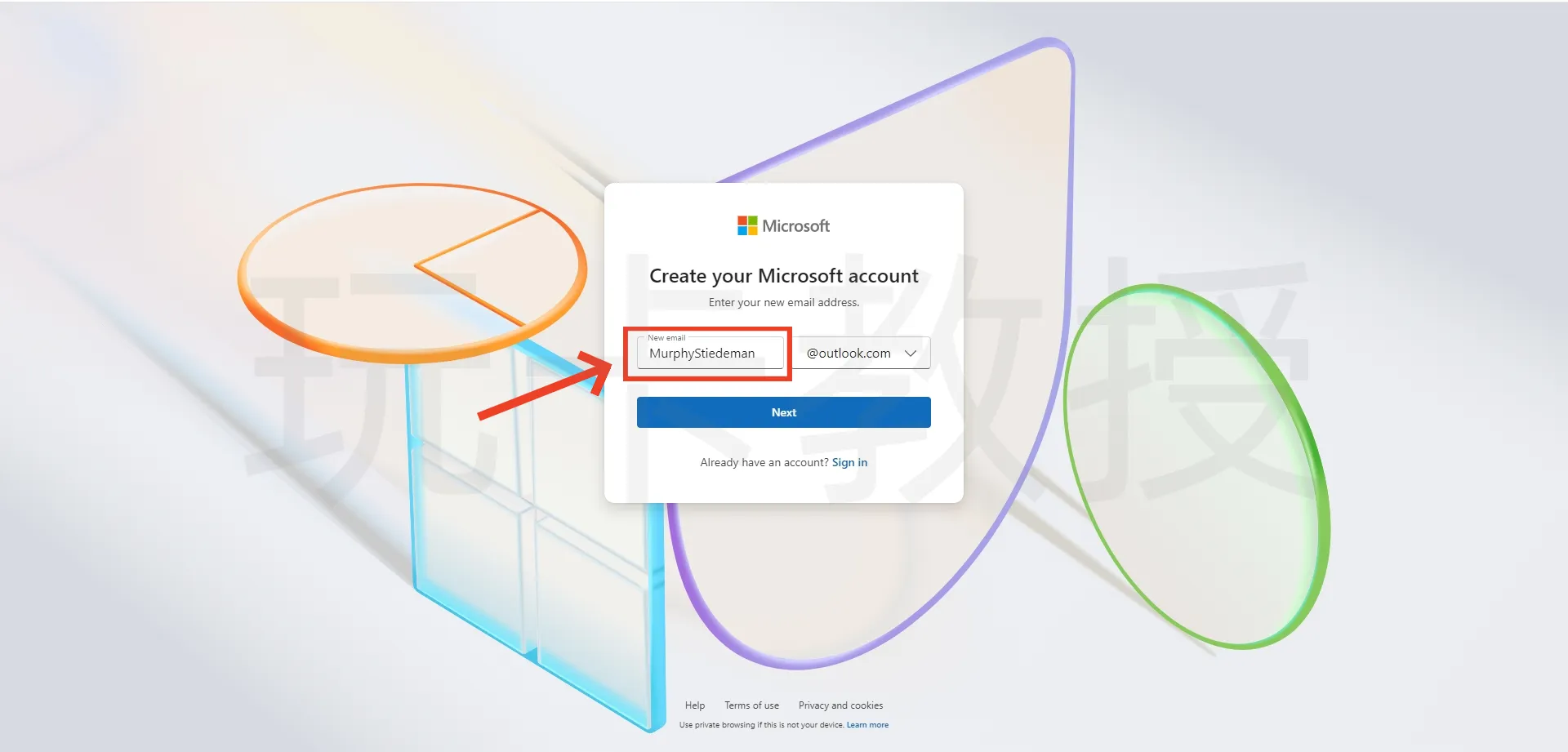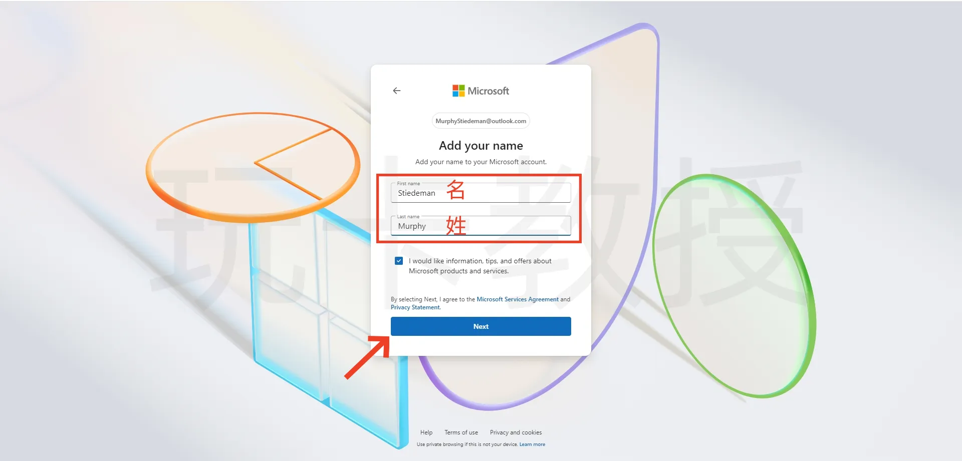 进入: https://signup.live.com/signup ,注册一个outlook邮箱(微软邮箱),我们把生成出来的名字复制过来,作为邮箱用户名,点击Next