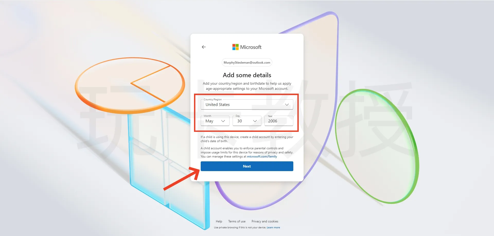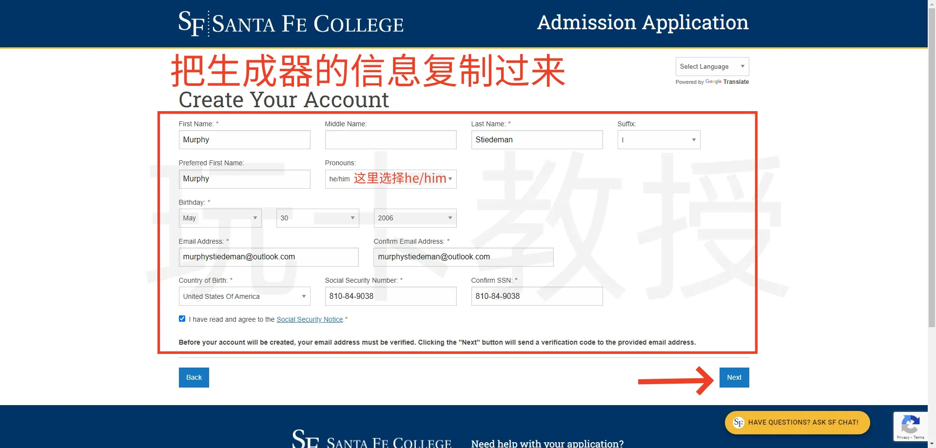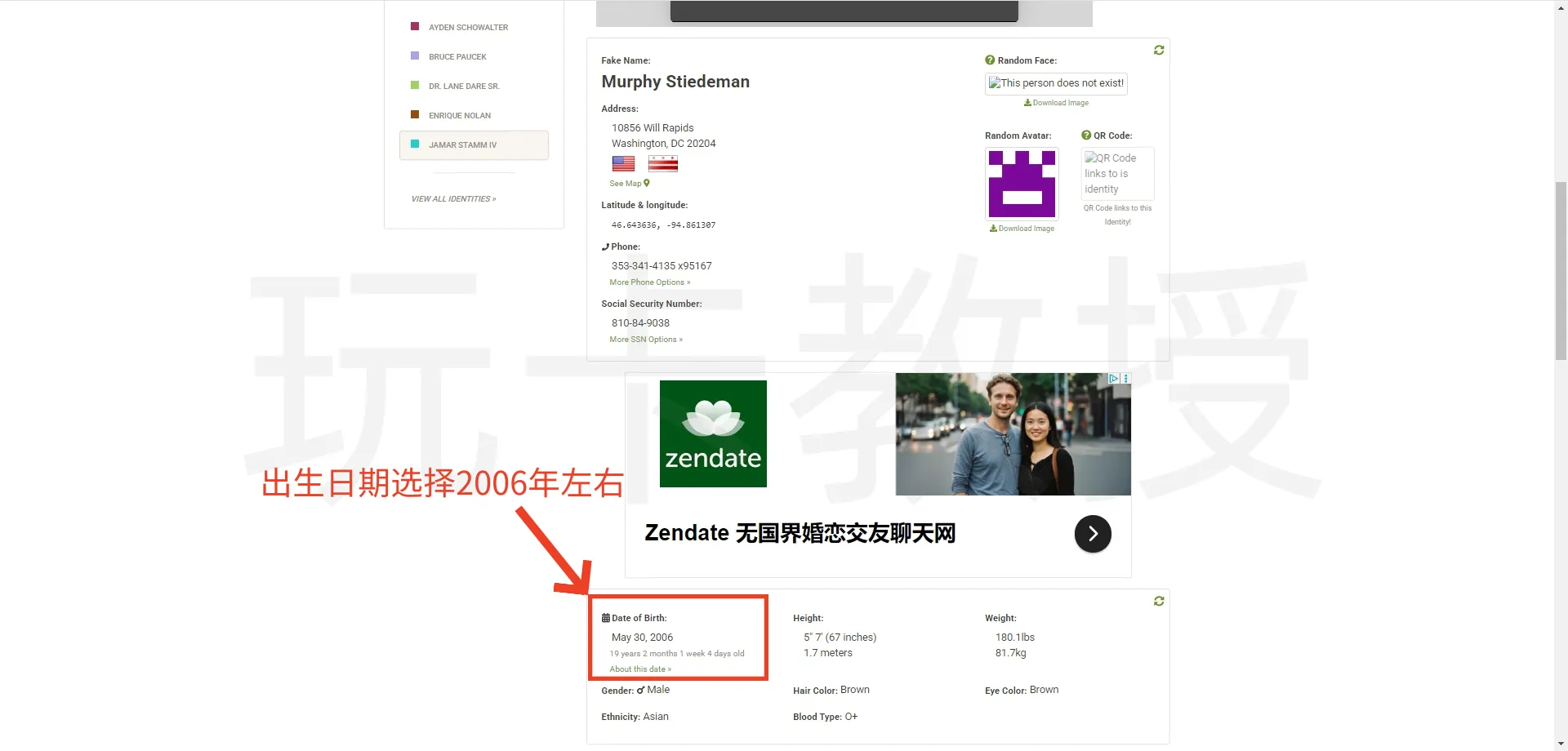 国家选择美国,把生成出来的出生年月日复制过来,点击Next