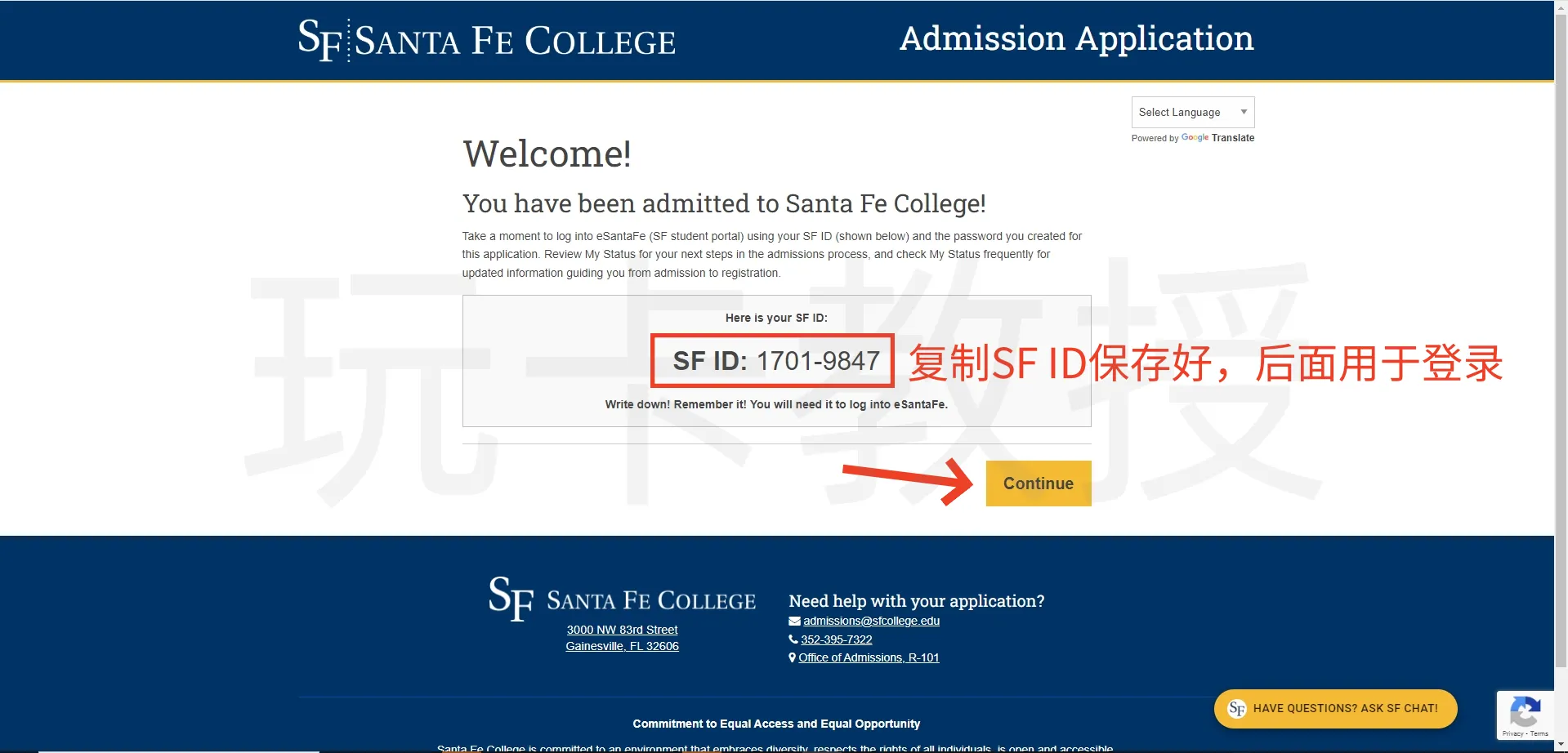 复制SF ID保存好( 务必保存好后面用于登录 ),点击Continue
