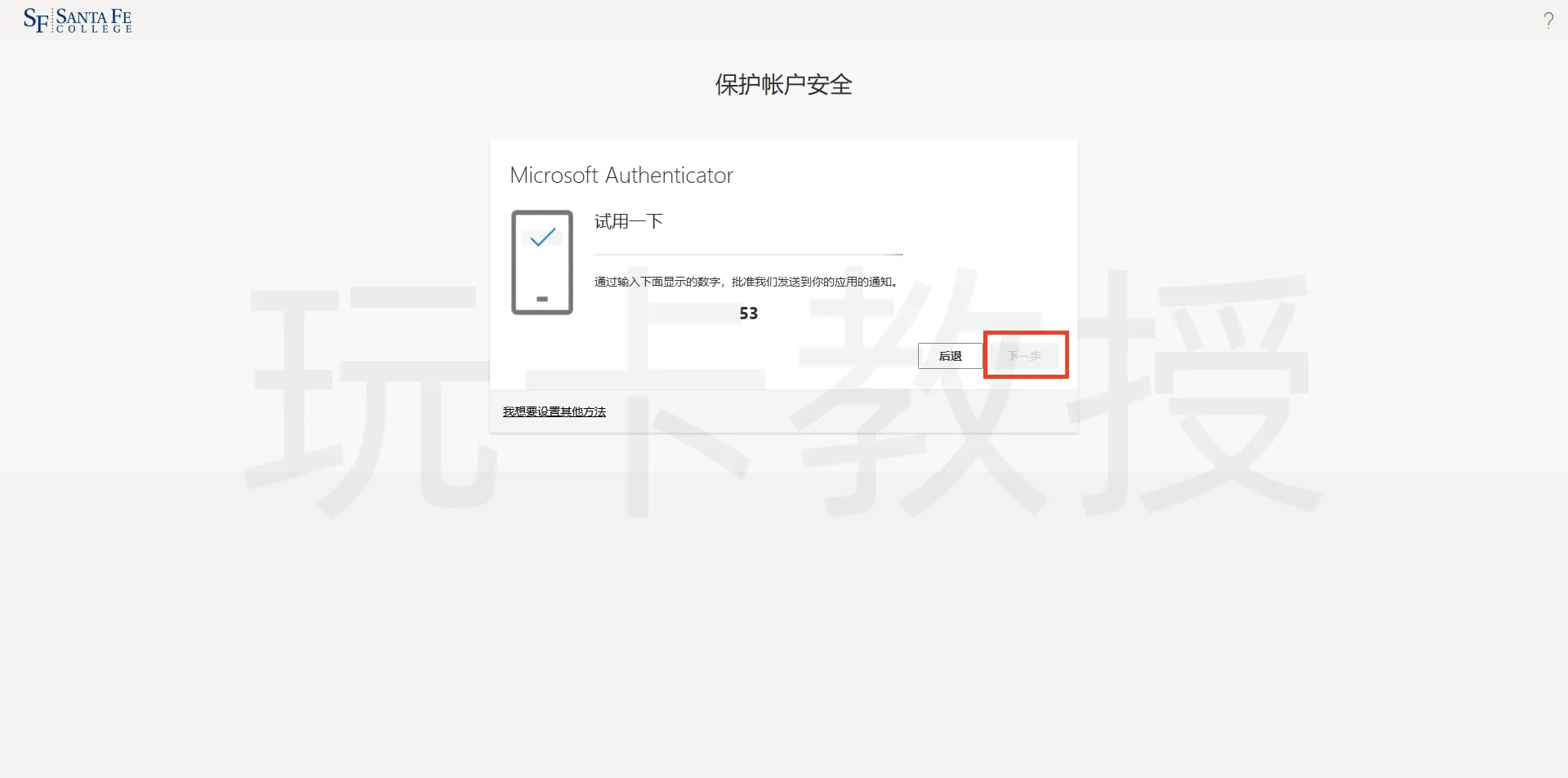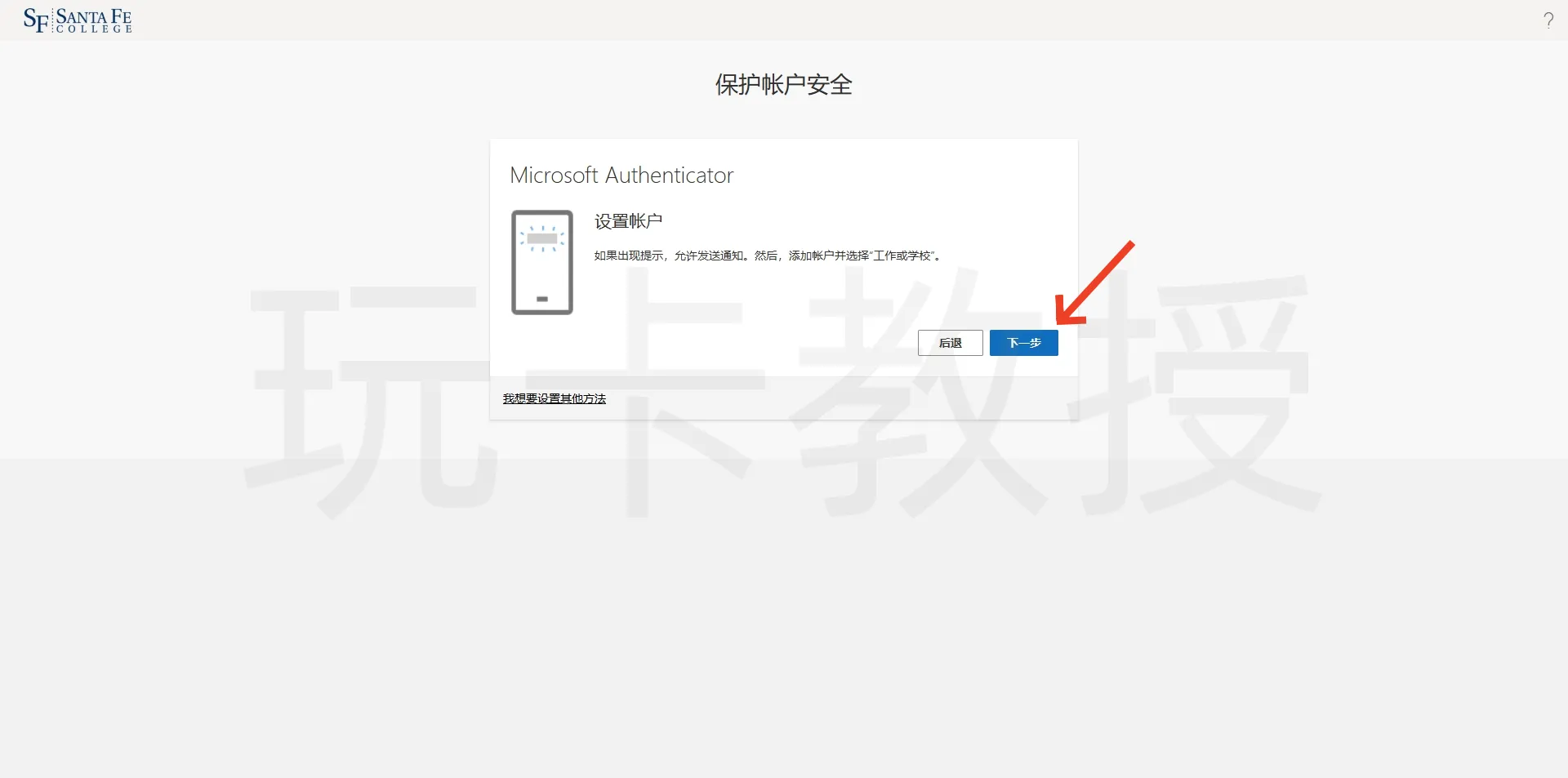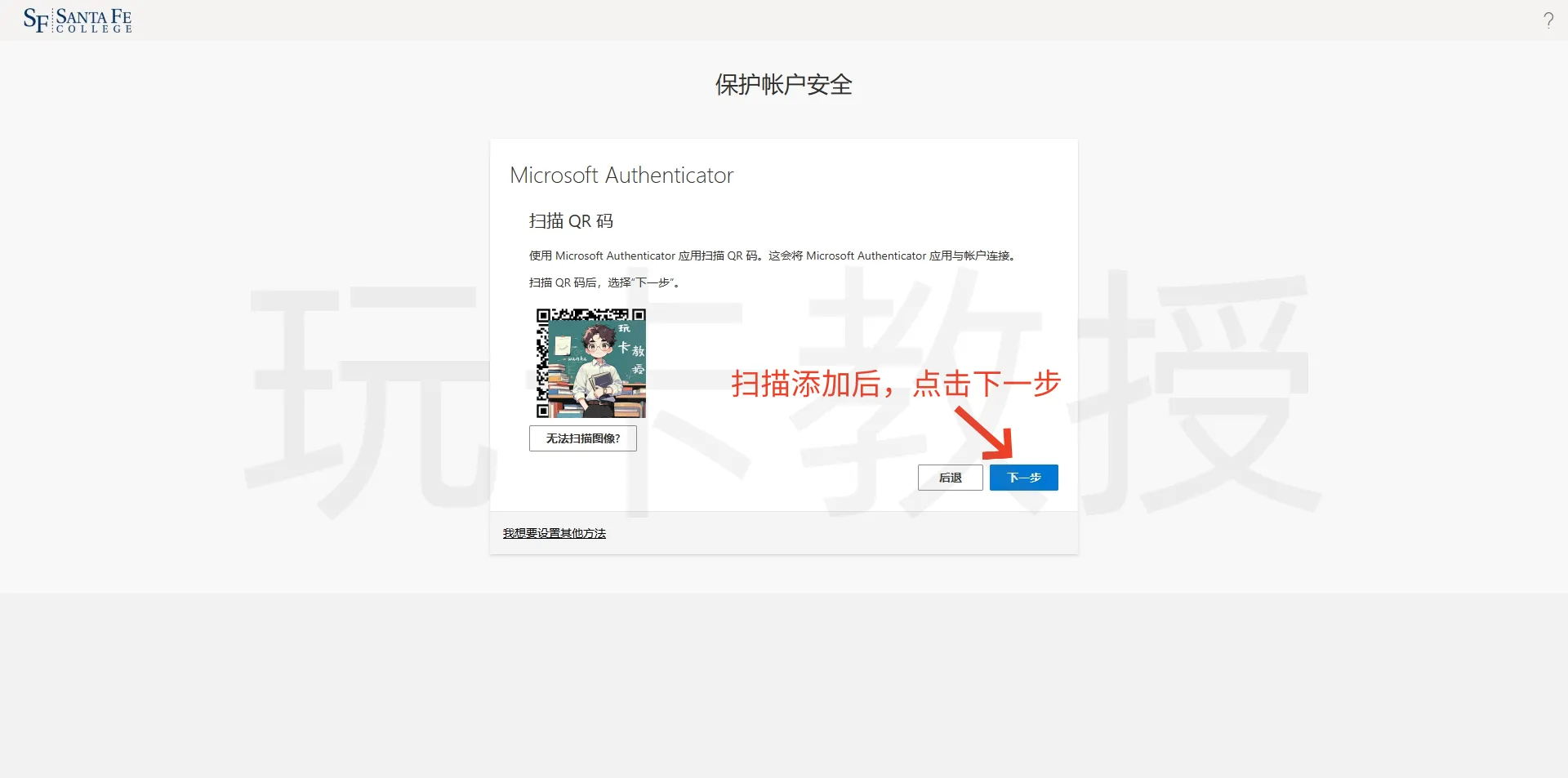 就会看到一个二维码,打开Microsoft Authenticator,扫描二维码后,点击下一步