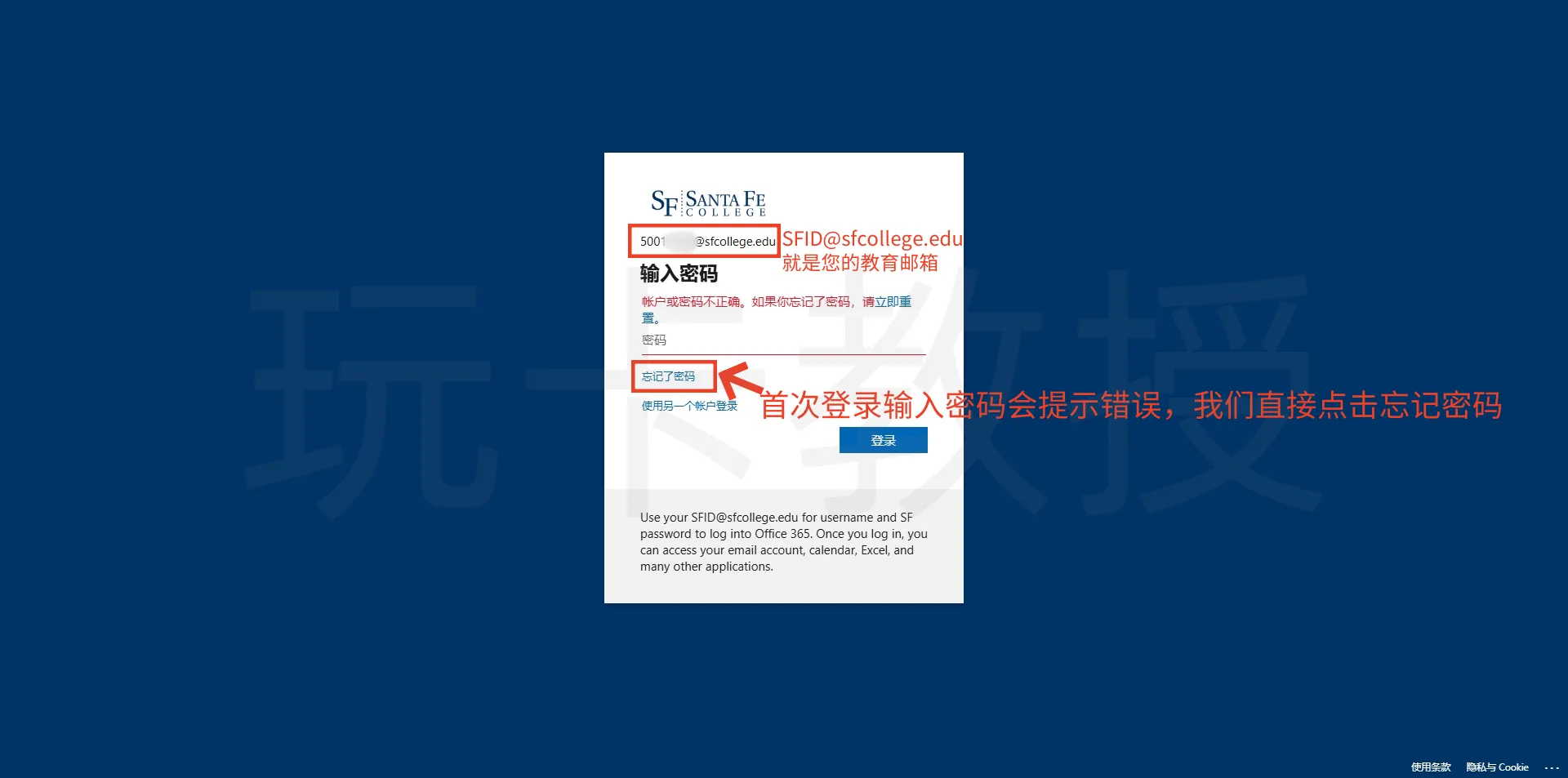 如果通过了,就会自动进入到这个页面,看到[email protected],就是您的教育邮箱(复制保存好),我们 点击忘记密码 (首次登录时输入申请时候设置的密码会提示错误)