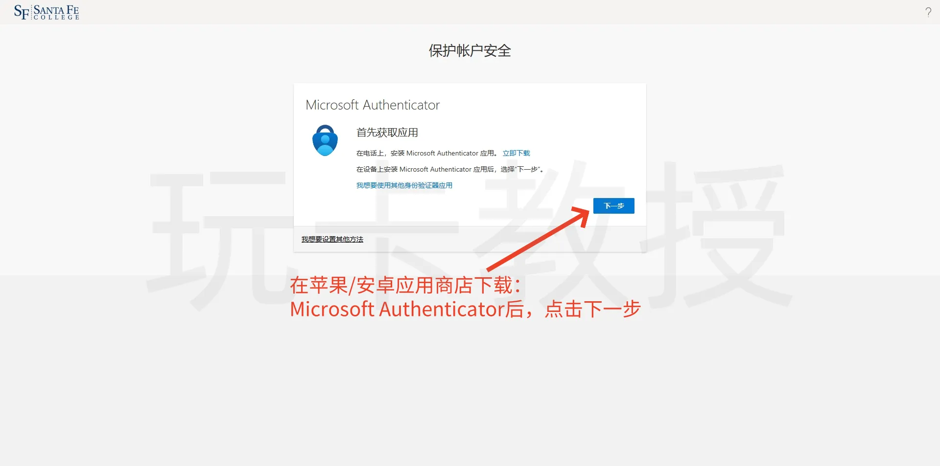 我们在苹果/安卓应用商店下载:Microsoft Authenticator后,点击下一步
