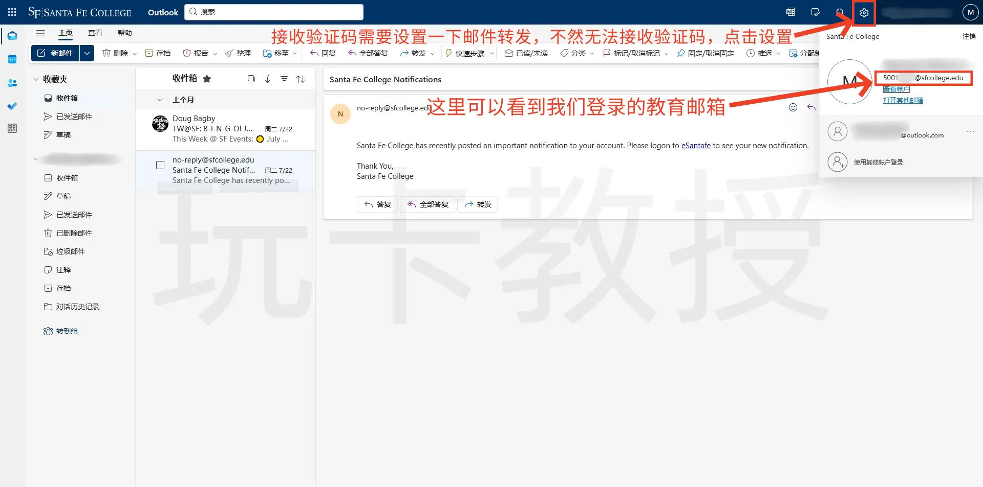 就会自动进入我们的教育邮箱,以后需要登录教育邮箱,我们通过outlook邮箱( http://login.microsoftonline.com/ )的登录入口进行登录即可,接下来我们点击设置,设置邮件转发,我们的教育邮箱无法接收到外部邮件,需要把邮件转发到别的邮箱