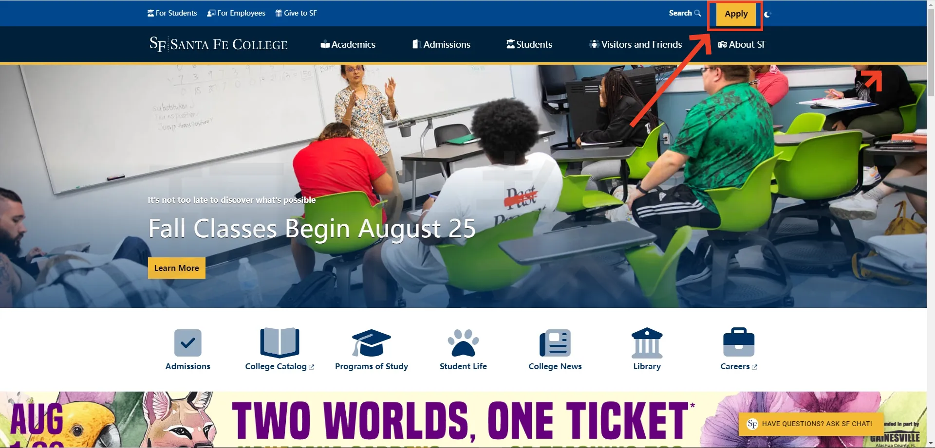 邮箱注册好后,我们打开: https://www.sfcollege.edu/ ,点击右上角Apply