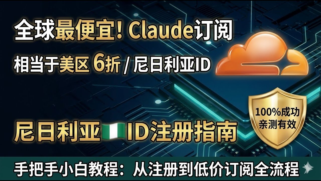 - 视频标题: 【全网最便宜】Claude订阅只要6折!尼日利亚🇳🇬苹果ID注册保姆级教程,100%成功!