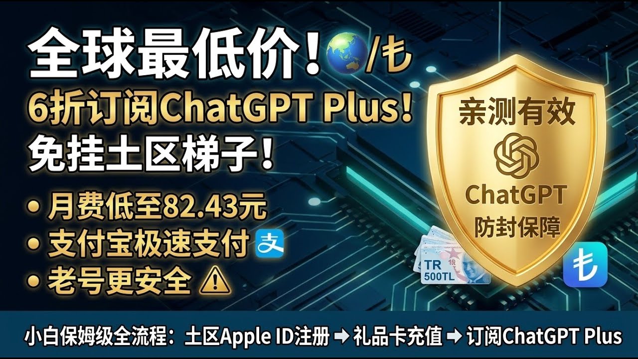 - 视频标题: 【全网最低】6折订阅ChatGPT Plus教程,免挂土区梯子,保姆级步骤!